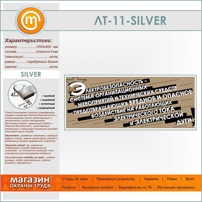 Лозунг «Электробезопасность - система мероприятий...» (LT-11-SILVER) в Бердске купить