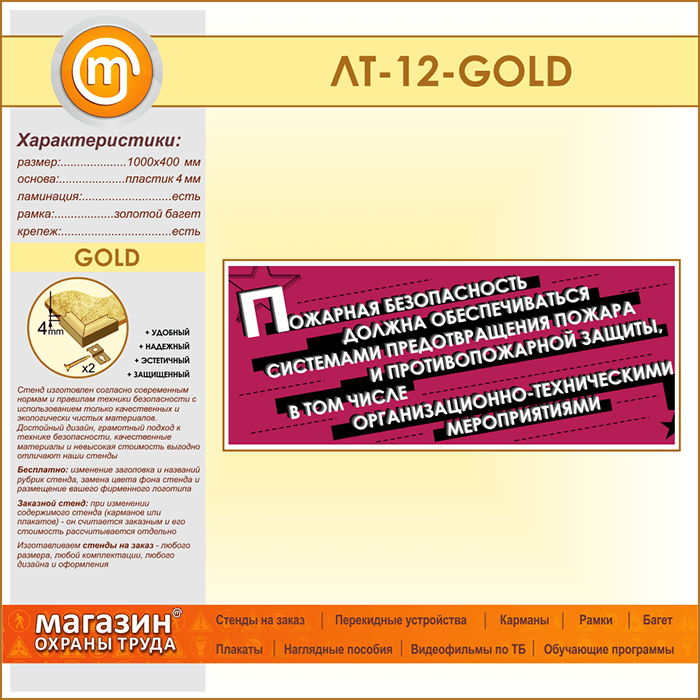 Лозунг «Пожарная безопасность должна обеспечиваться...» (LT-12-GOLD) в Бердске купить
