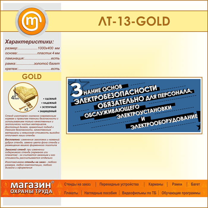 Лозунг «Знание основ электробезопасности обязательно...» (LT-13-GOLD) в Бердске купить