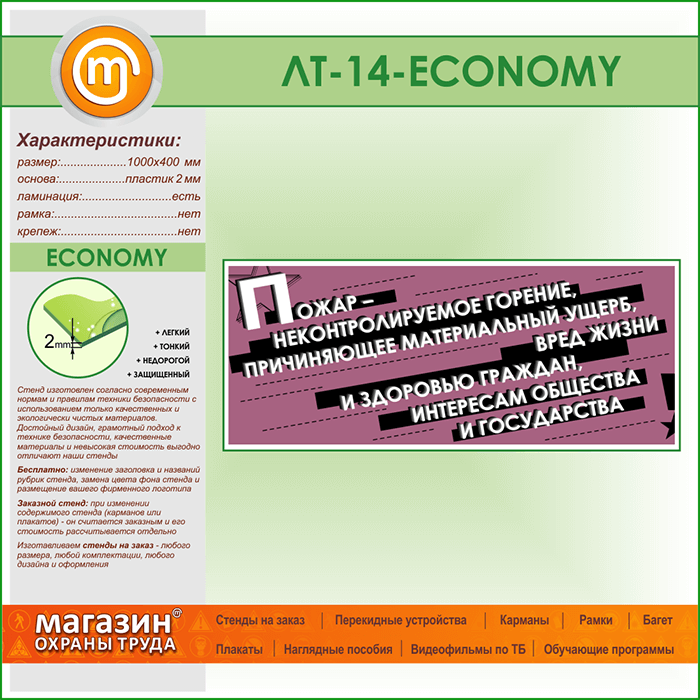 Лозунг «Пожар - неконтроллируемое горение...» (LT-14-ECONOMY) в Бердске купить