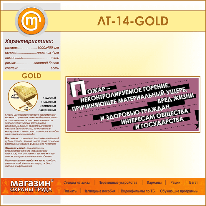 Лозунг «Пожар - неконтроллируемое горение...» (LT-14-GOLD) в Бердске купить