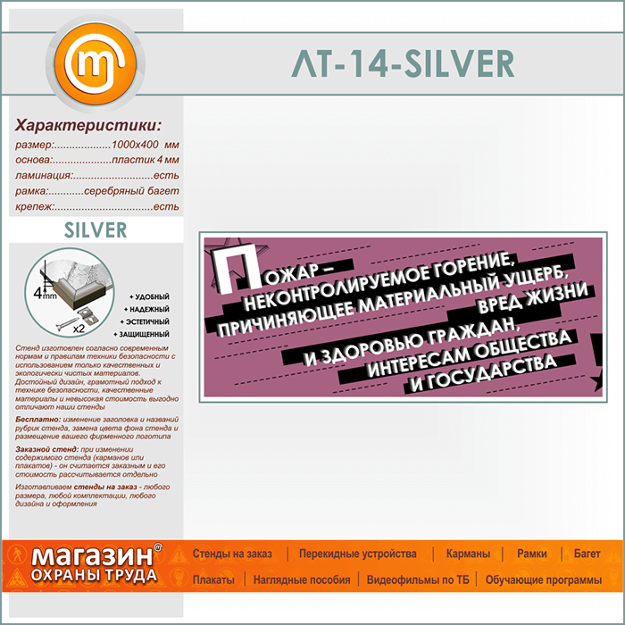 Лозунг «Пожар - неконтроллируемое горение...» (LT-14-SILVER) в Бердске купить