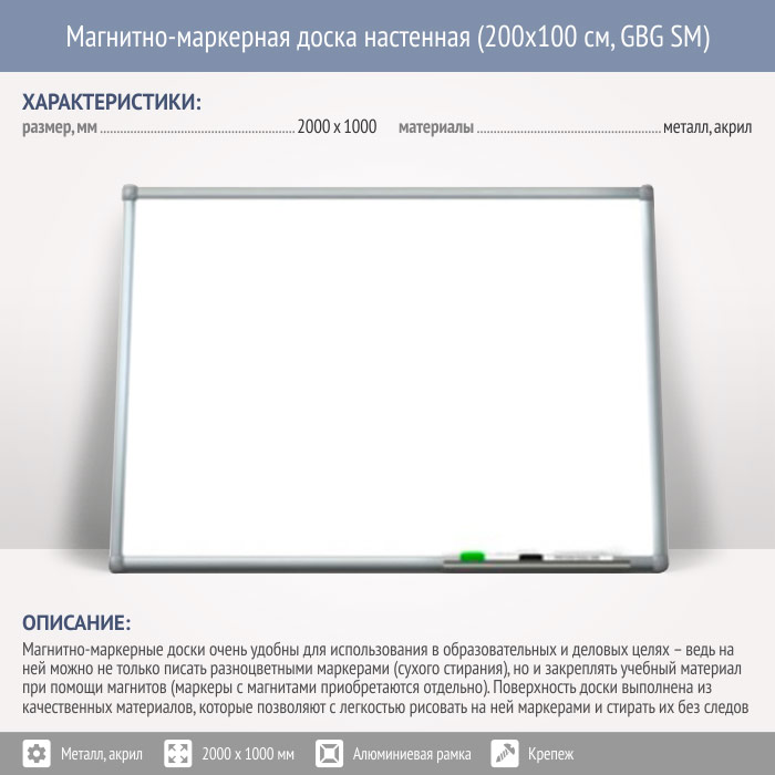 Магнитно-маркерная доска настенная (200x100 см, GBG SM) в Бердске купить
