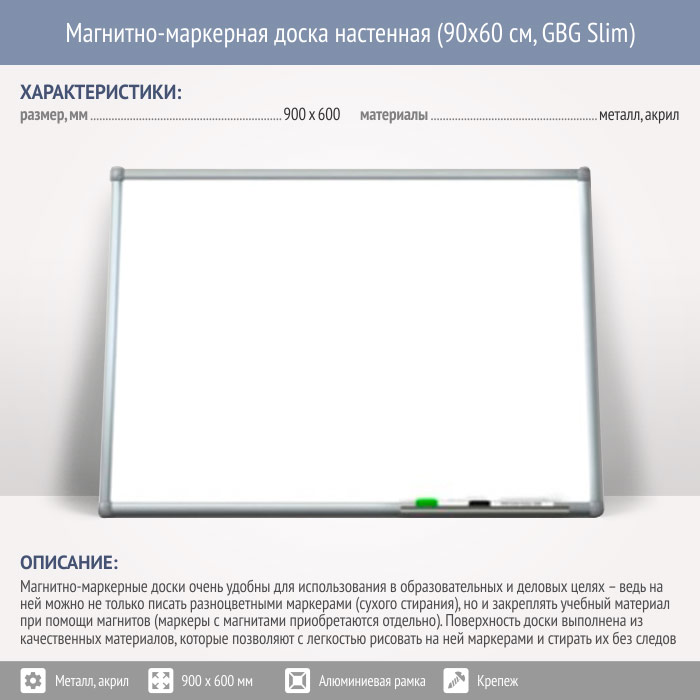 Магнитно-маркерная доска настенная (90x60 см, GBG Slim) в Бердске купить