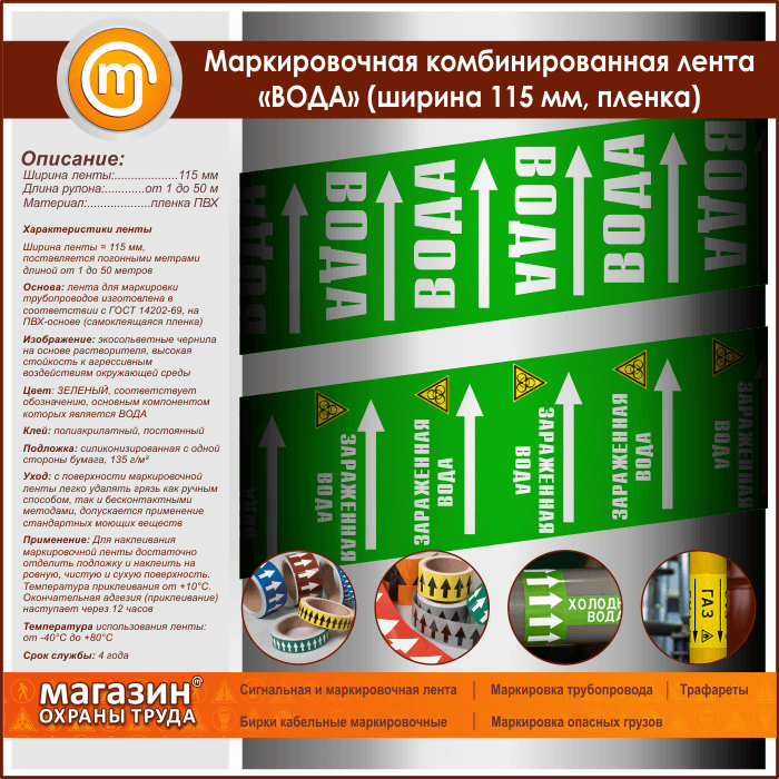 Маркировочная комбинированная лента «ВОДА» (ширина 115 мм, самоклеящаяся плёнка) в Бердске купить