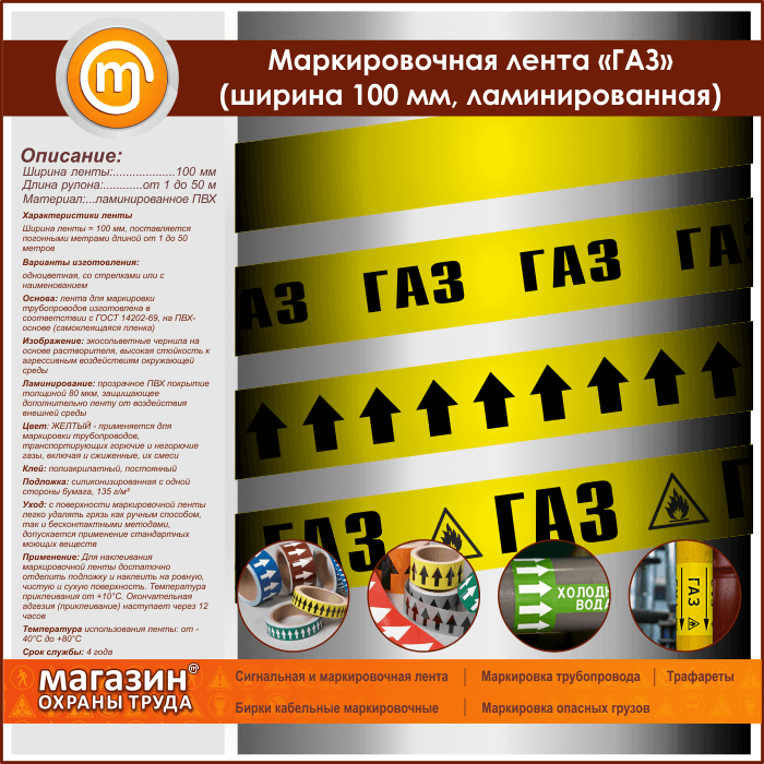 Маркировочная лента «ГАЗ» (ширина 100 мм, самоклеящаяся плёнка) в Бердске купить