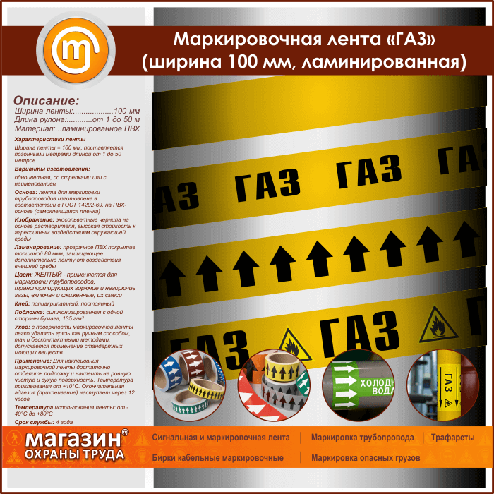 Маркировочная лента «ГАЗ» (ширина 100 мм, самоклеящаяся плёнка с ламинированием) в Бердске купить