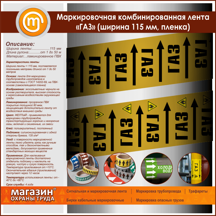 Маркировочная комбинированная лента «ГАЗ» (ширина 115 мм, самоклеящаяся плёнка с ламинированием) в Бердске купить