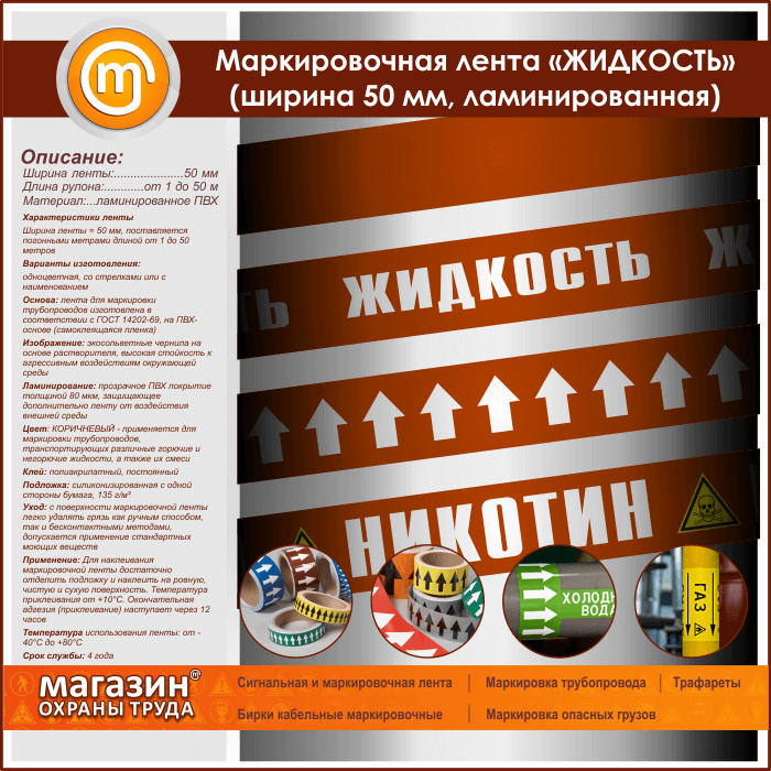 Маркировочная лента «ЖИДКОСТЬ» (ширина 50 мм, самоклеящаяся плёнка) в Бердске купить