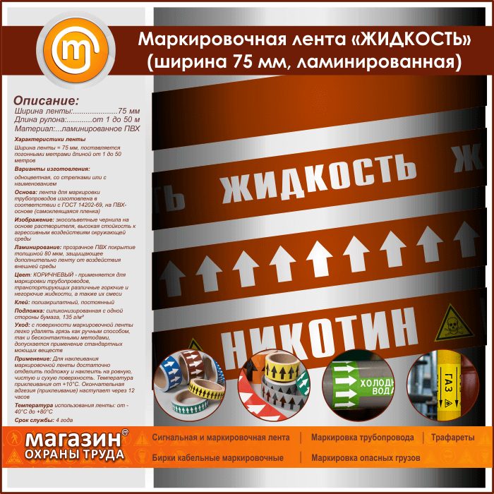 Маркировочная лента «ЖИДКОСТЬ» (ширина 75 мм, самоклеящаяся плёнка) в Бердске купить