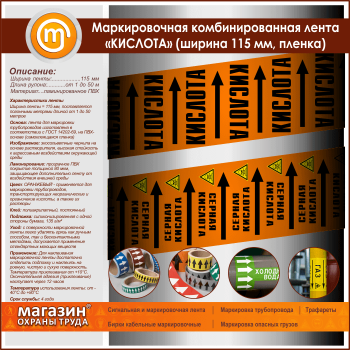 Маркировочная комбинированная лента «КИСЛОТА» (ширина 115 мм, самоклеящаяся плёнка) в Бердске купить