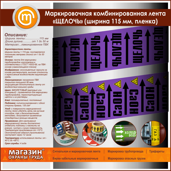 Маркировочная комбинированная лента «ЩЕЛОЧЬ» (ширина 115 мм, самоклеящаяся плёнка с ламинированием) в Бердске купить
