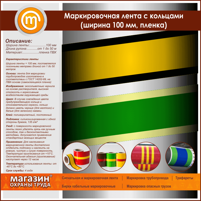 Маркировочная лента с кольцами (ширина 100 мм, самоклеящаяся плёнка) в Бердске купить