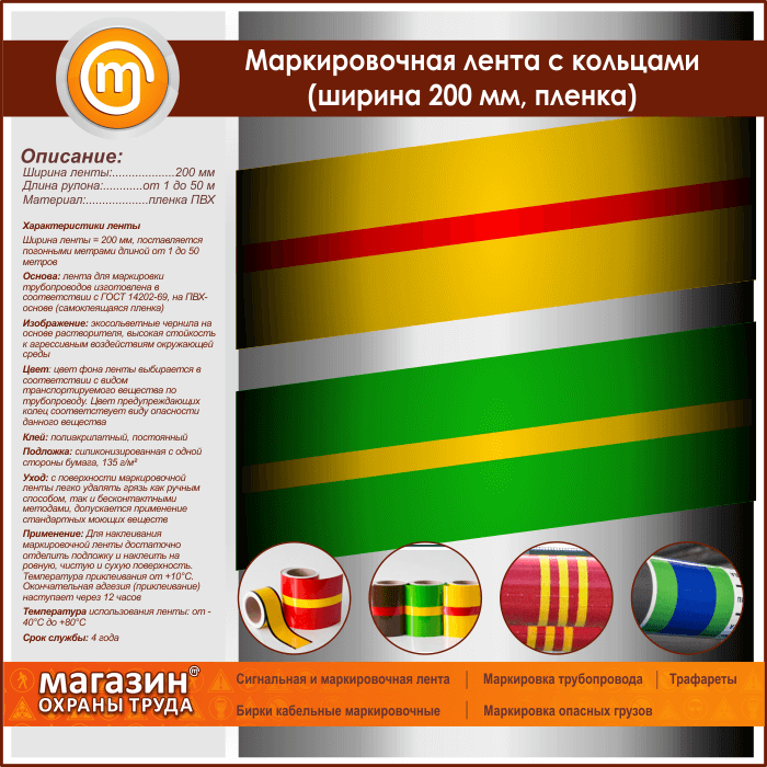Маркировочная лента с кольцами (ширина 200 мм, самоклеящаяся плёнка) в Бердске купить