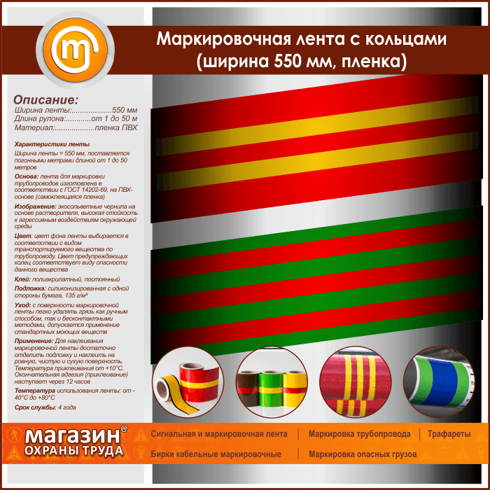 Маркировочная лента с кольцами (ширина 550 мм, самоклеящаяся плёнка) в Бердске купить