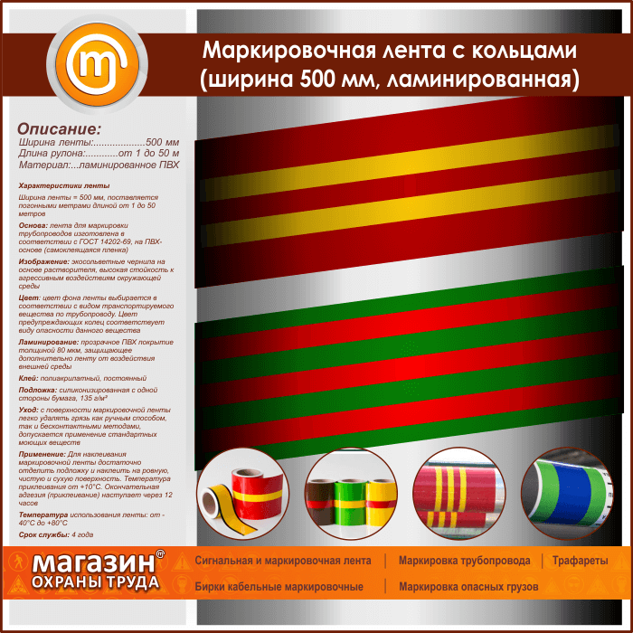 Маркировочная лента с кольцами (ширина 500 мм, самоклеящаяся плёнка с ламинированием) в Бердске купить