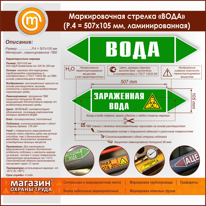 Маркировочная стрелка «ВОДА» (P.4 = 507х105 мм, самоклеящаяся плёнка с ламинированием) в Бердске купить