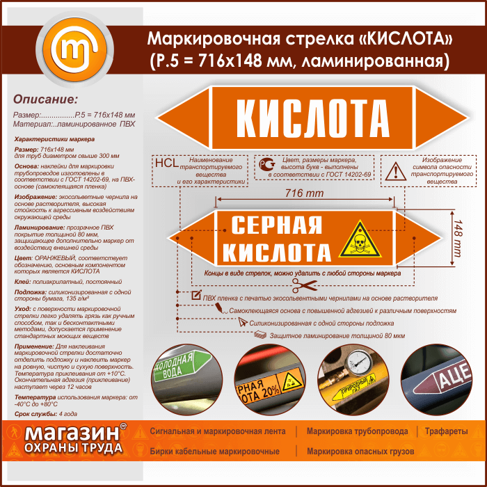 Маркировочная стрелка «КИСЛОТА» (P.5 = 716х148 мм, самоклеящаяся плёнка с ламинированием) в Бердске купить
