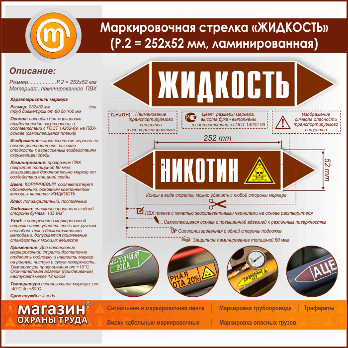 Маркировочная стрелка «ЖИДКОСТЬ» (P.2 = 252х52 мм, самоклеящаяся плёнка с ламинированием) в Бердске купить