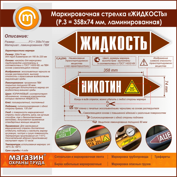 Маркировочная стрелка «ЖИДКОСТЬ» (P.3 = 358х74 мм, самоклеящаяся плёнка с ламинированием) в Бердске купить