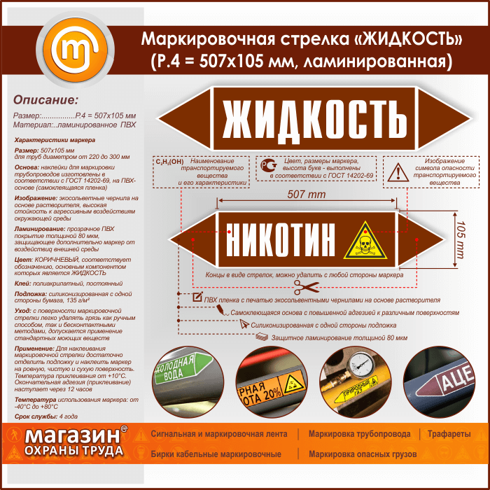 Маркировочная стрелка «ЖИДКОСТЬ»(P.4 = 507х105 мм, самоклеящаяся плёнка с ламинированием) в Бердске купить