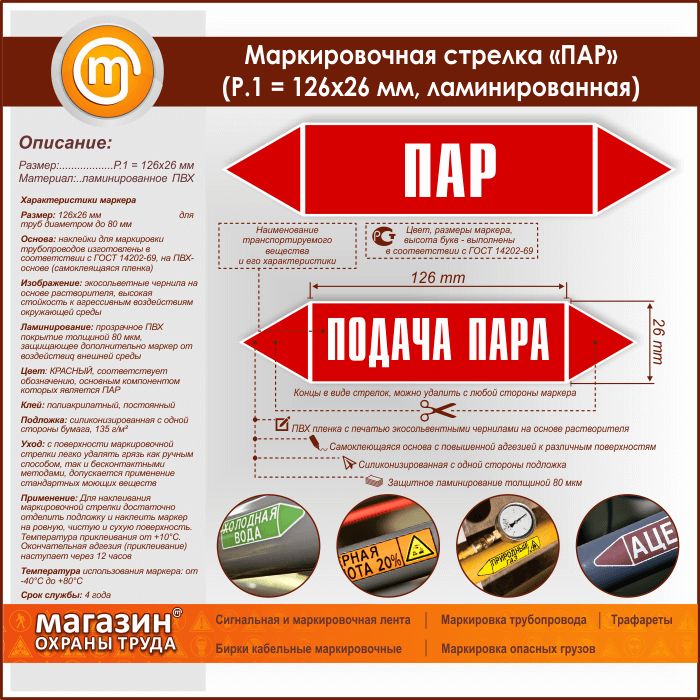 Маркировочная стрелка «ПАР» (Р.1 = 126х26 мм, самоклеящаяся плёнка с ламинированием) в Бердске купить