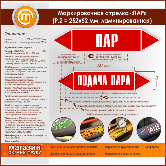 Маркировочная стрелка «ПАР» (P.2 = 252х52 мм, самоклеящаяся плёнка с ламинированием) в Бердске купить