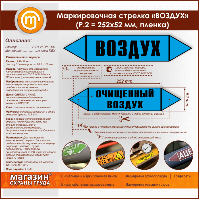 Маркировочная стрелка «ВОЗДУХ» (P.2 = 252х52 мм, самоклеящаяся плёнка) в Бердске купить