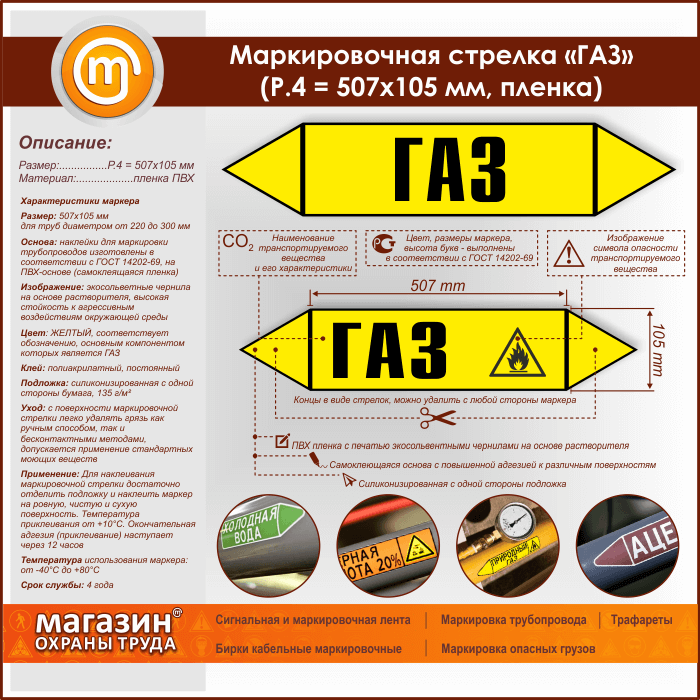 Маркировочная стрелка «ГАЗ» (P.4 = 507х105 мм, самоклеящаяся плёнка) в Бердске купить