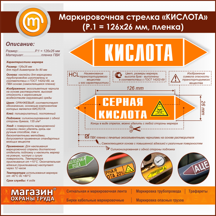Маркировочная стрелка «КИСЛОТА» (Р.1 = 126х26 мм, самоклеящаяся плёнка) в Бердске купить