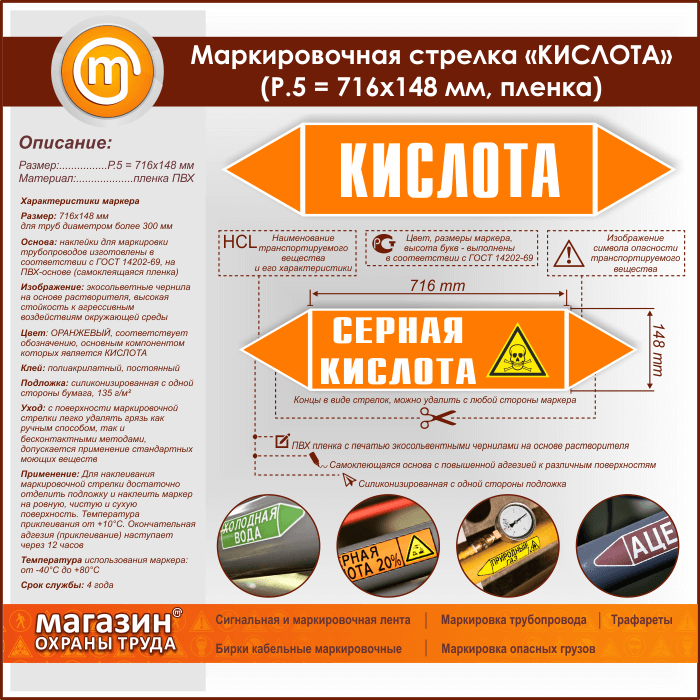 Маркировочная стрелка «КИСЛОТА» (P.5 = 716х148 мм, самоклеящаяся плёнка) в Бердске купить