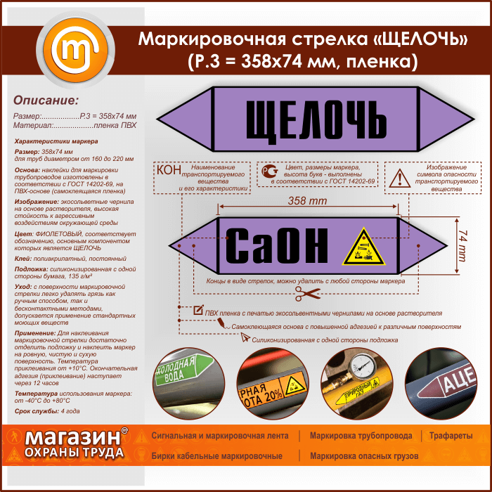 Маркировочная стрелка «ЩЕЛОЧЬ» (P.3 = 358х74 мм, самоклеящаяся плёнка) в Бердске купить