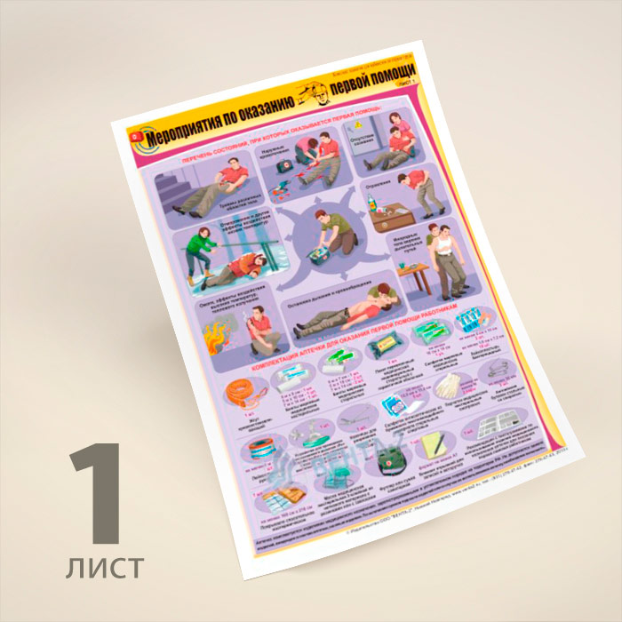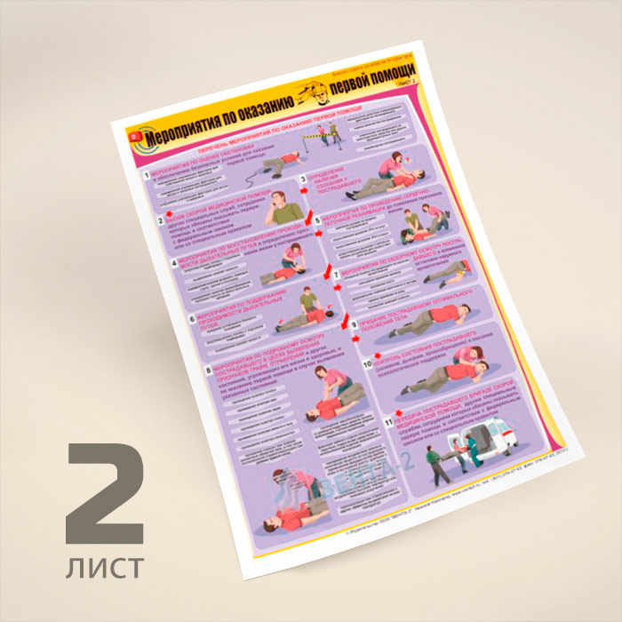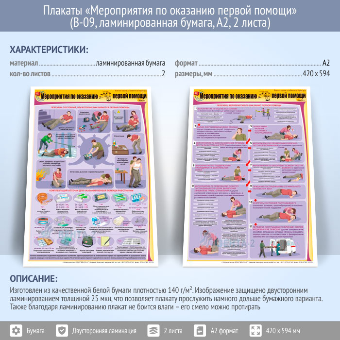 Плакаты «Мероприятия по оказанию первой помощи» (В-09, ламинированная бумага, А2, 2 листа) в Бердске купить