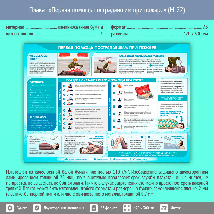 Плакат «Первая помощь пострадавшим при пожаре» (М-22, ламинированная бумага, А3, 1 лист) в Бердске купить