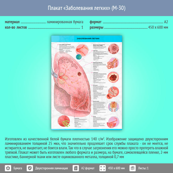 Плакат «Заболевания легких» (М-30, ламинированная бумага, А2, 1 лист) в Бердске купить