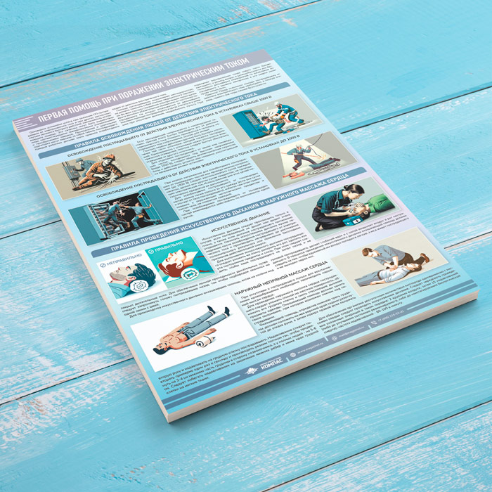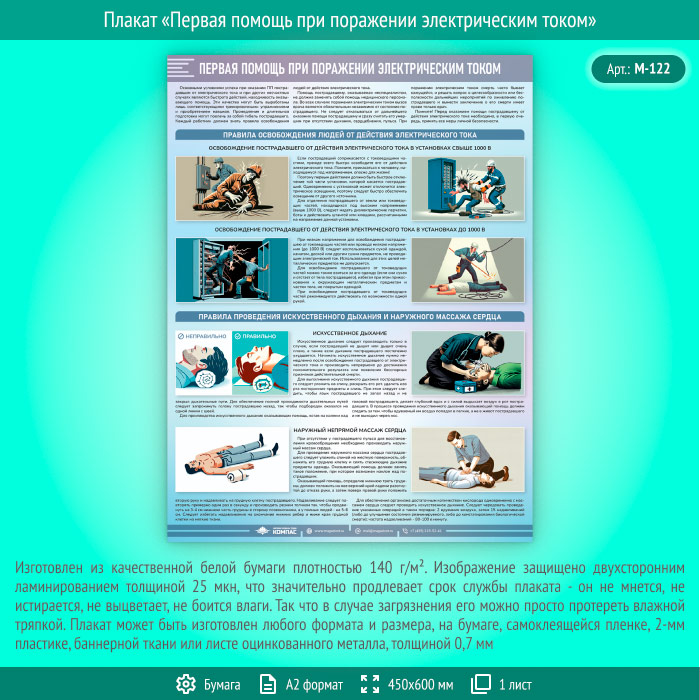 Плакат «Первая помощь при поражении электрическим током» (М-122, ламинированная бумага, А2, 1 лист) в Бердске купить