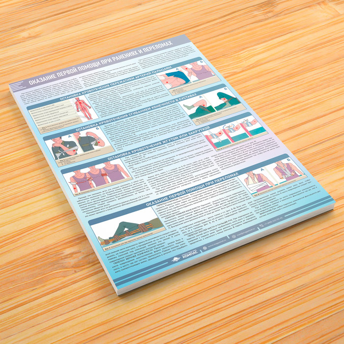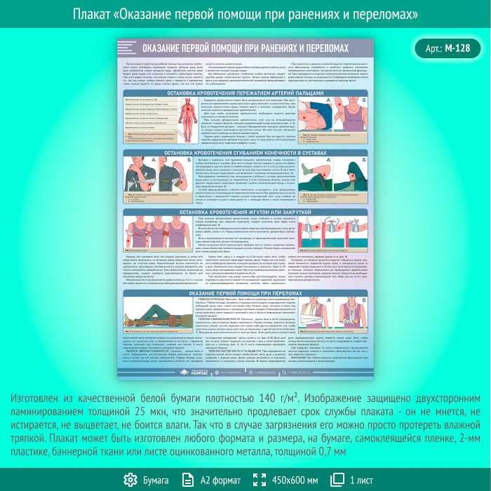 Плакат «Оказание первой помощи при ранениях и переломах» (М-128, ламинированная бумага, А2, 1 лист) в Бердске купить