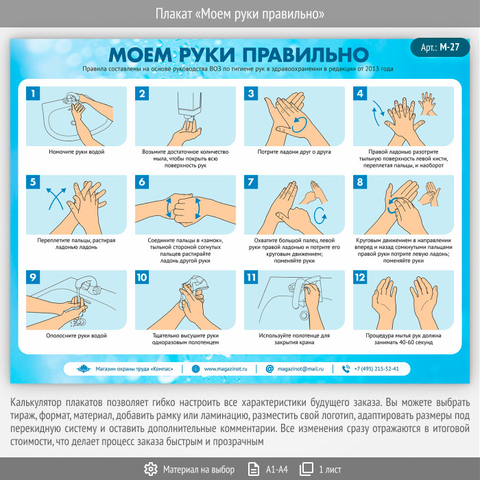 Плакат «Моем руки правильно» (М-27, 1 лист) в Бердске купить