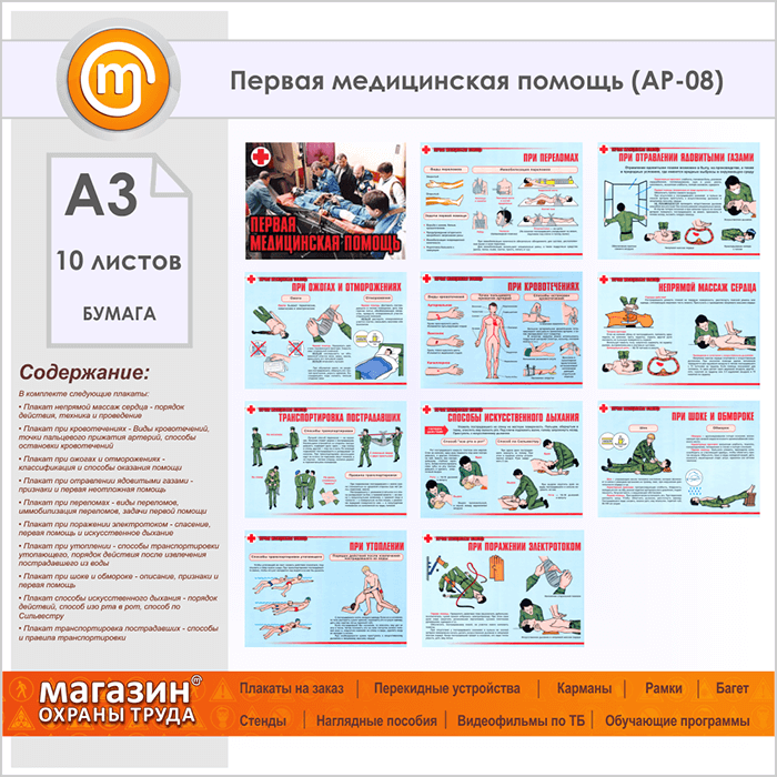 Плакаты «Первая медицинская помощь» (АР-08, бумага, А3, 10 листов) в Бердске купить