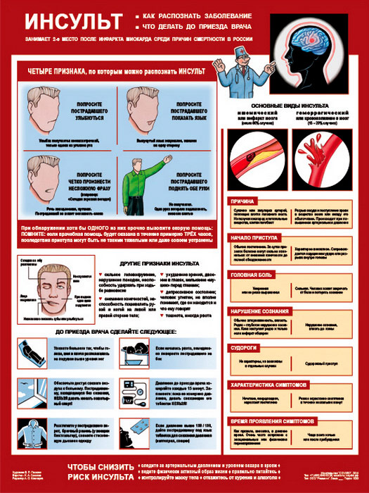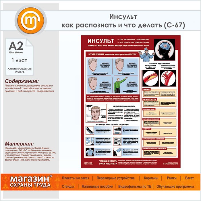 Плакат «Инсульт - как распознать и что делать» (С-67, ламинированная бумага, А2, 1 лист) в Бердске купить