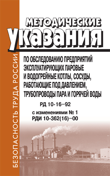 Методические указания по обследованию предприятий, эксплуатирующих паровые и водогрейные котлы, сосуды, работающие под давлением, трубопроводы пара и горячей воды. РД 10-16-92 (ЛД-112) в Бердске купить