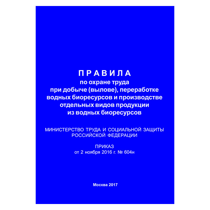 Правила по охране труда при добыче (вылове), переработке водных биоресурсов и производстве отдельных видов продукции из водных биоресурсов (Приказ Минтруда РФ от 02.11.2016 № 604н) (ЛАП-22) в Бердске купить