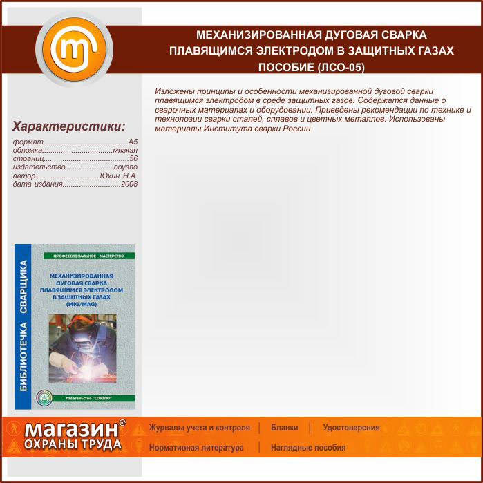 Механизированная дуговая сварка плавящимся электродом в защитных газах – пособие (ЛСО-05) в Бердске купить