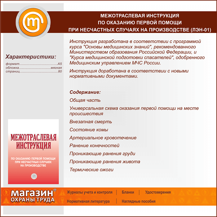 Межотраслевая инструкция по оказанию первой помощи при несчастных случаях на производстве (ЛЭН-01) в Бердске купить