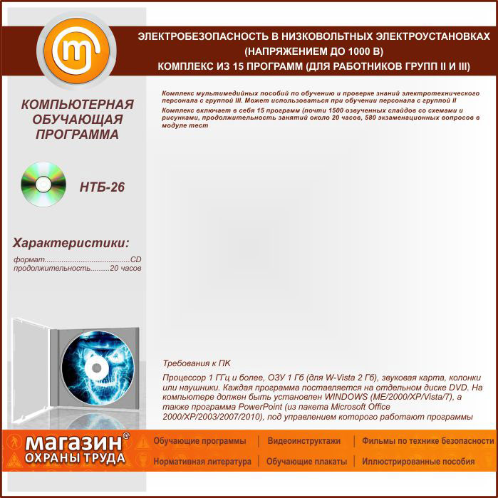 «Электробезопасность в низковольтных электроустановках (напряжением до 1000 В)», комплекс из 15 обучающих программ (для работников групп II и III) в Бердске купить