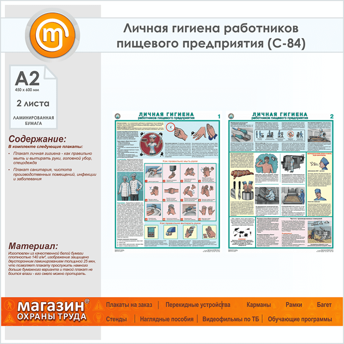 Плакаты «Личная гигиена работников пищевого предприятия» (С-84, ламинированная бумага, А2, 2 листа) в Бердске купить