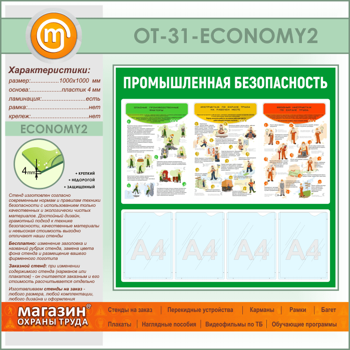 Стенд «Промышленная безопасность» с 4 карманами (OT-31-ECONOMY2) в Бердске купить
