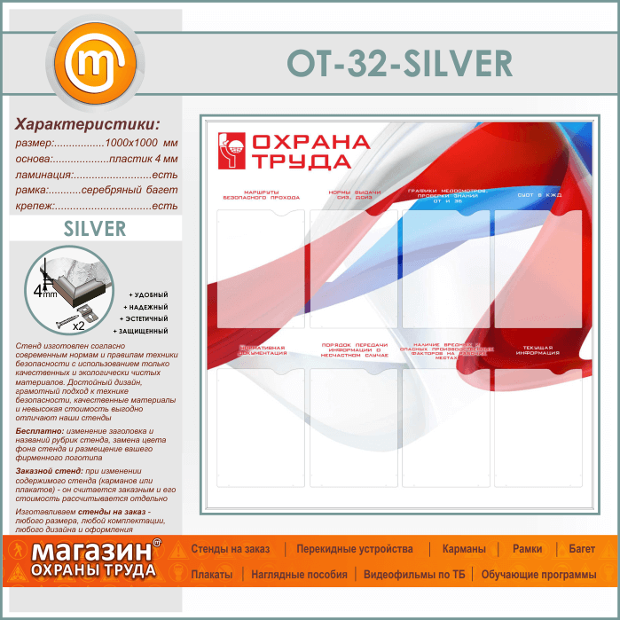 Стенд «Охрана труда» с 8 карманами (OT-32-SILVER) в Бердске купить