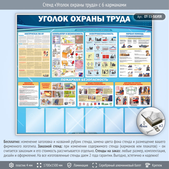 Стенд «Уголок охраны труда» с 6 карманами (OT-33-SILVER) в Бердске купить