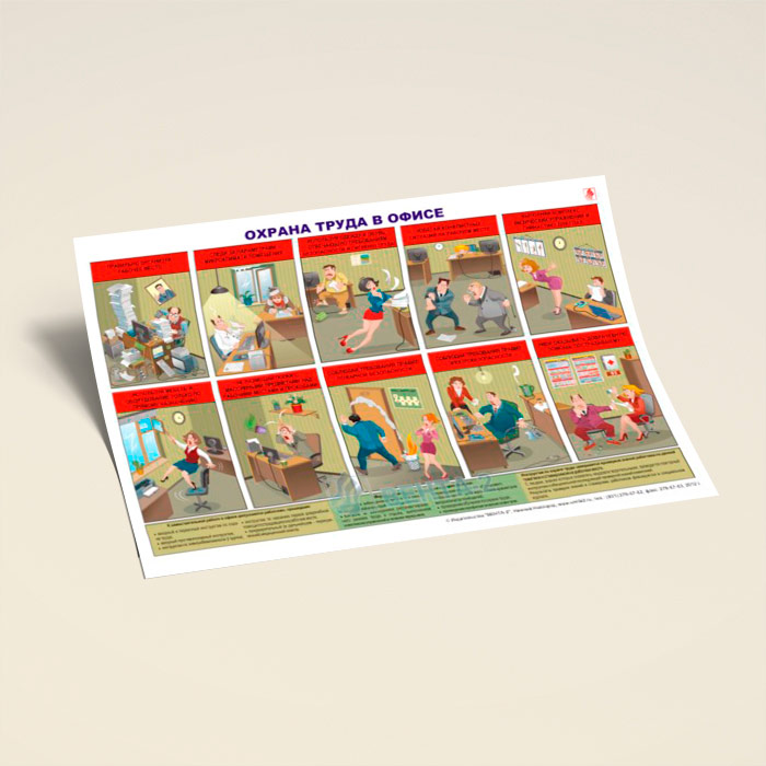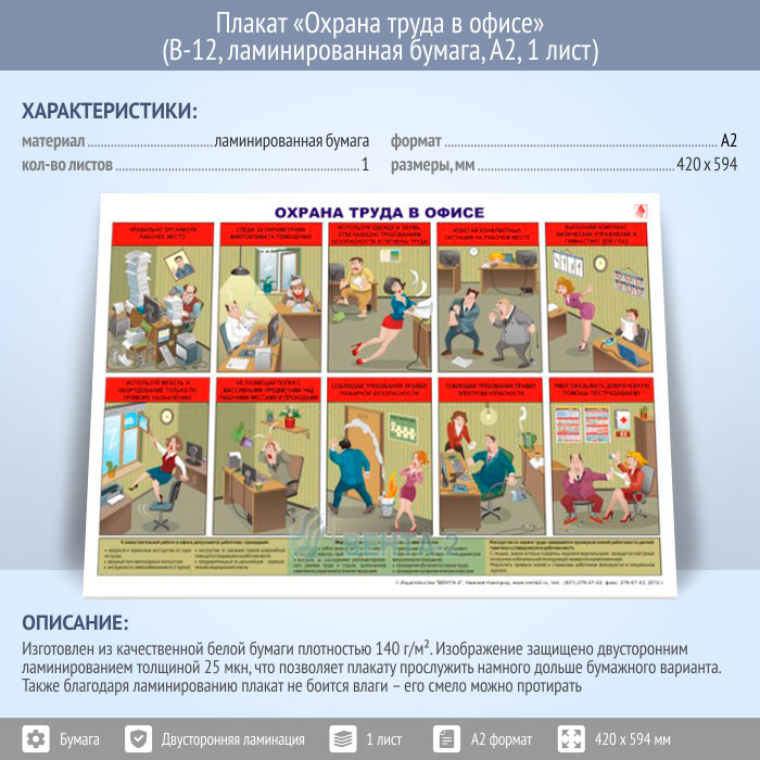 Плакат «Охрана труда в офисе» (В-12, ламинированная бумага, А2, 1 лист) в Бердске купить